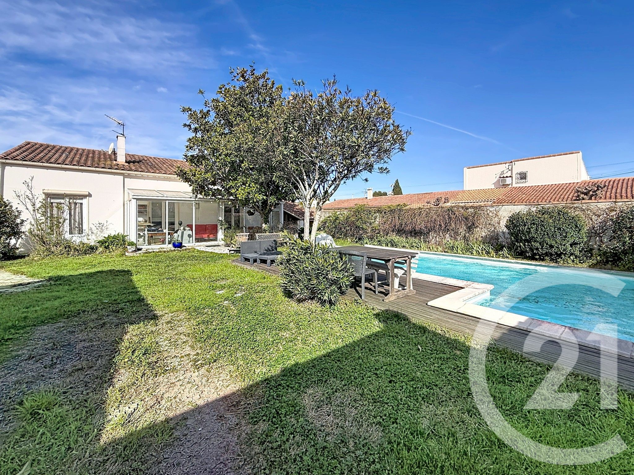 Implantée sur une parcelle d'environ 500 m², la maison dispose d'un agréable extérieur avec piscine, idéal pour profiter des beaux jours. Plusieurs dépendances et abris permettent d'optimiser le rangement.